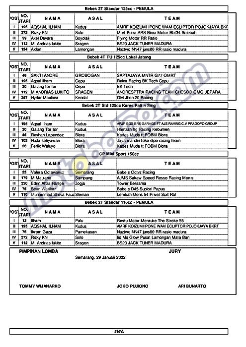Beberapa kelas pemula pun telah berhasil dilangsungkan hari ini, beberapa diantaranya adalah untuk kelas pemula baik di kategori dua tak 125 cc maupun 116 cc.
