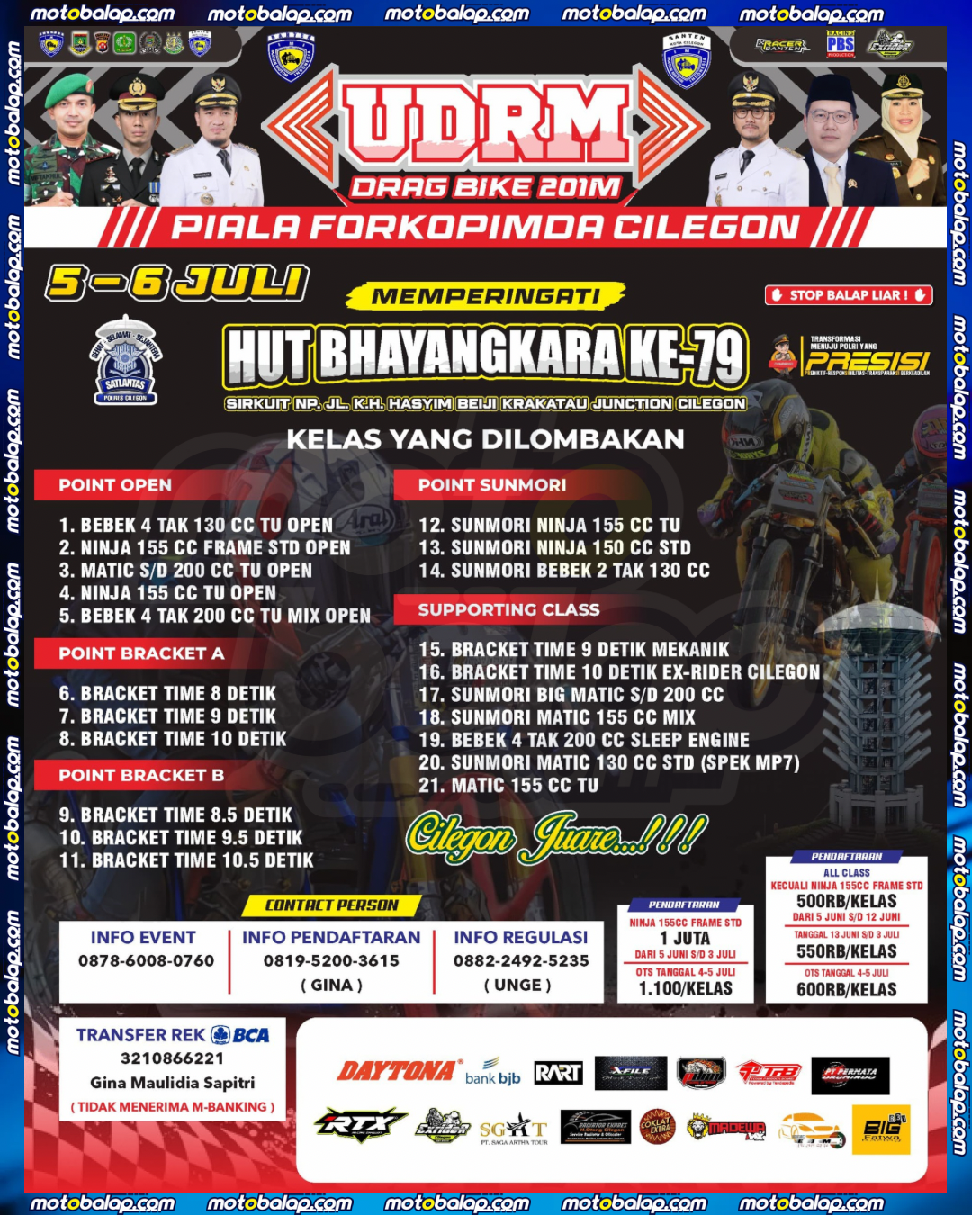 UDRM Dragbike 201M Piala Forkopimda Cilegon Siap Digelar Pekan Ini Hadiah Juara Umum Tembus 10 Juta Rupiah
