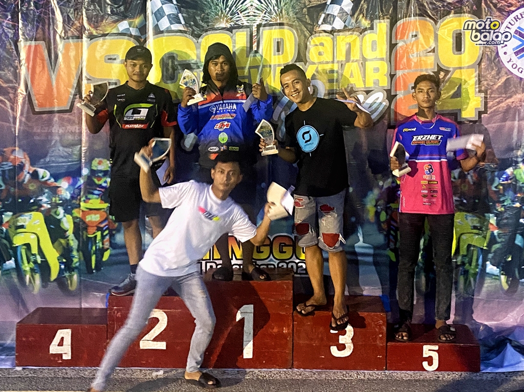 MOTOBALAP.COM – Persaingan di kelas Bebek 2 Tak 125cc Underbone Open selalu menjadi hal yang paling di tunggu. Pasalnya, pada kelas tersebut selalu menyuguhkan persaingan yang sangat sengit. Begitu pula pada event VSC Old And New Year 2024 yang terselenggara di Sirkuit non permamnen Stadion Mandala Krida, Yogyakarta (01/01/2024).
